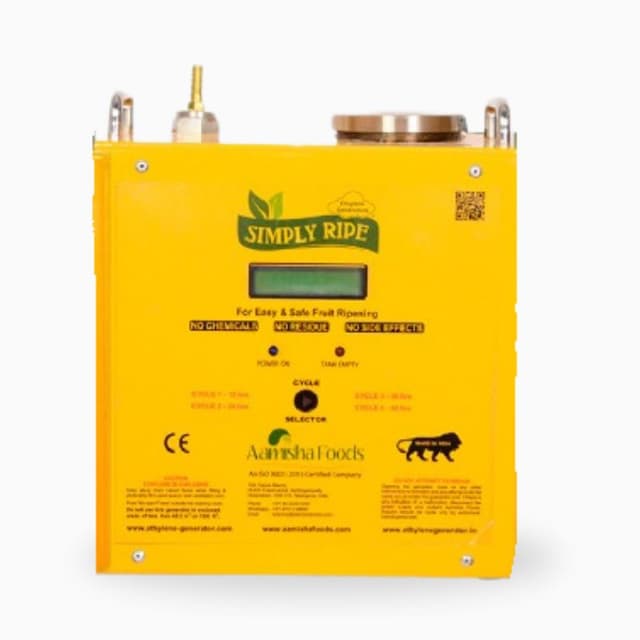 Especially designed for smaller fruit ripening chambers, small holder farmers and traders in developing countries, the SIMPLY ripe Ethylene Generator is a ‘No-Frill Sheer Business’ Ethylene Generator termed Value for money by our innimerous customers spread far and wide. Just Fill it, Turn it on and Forget it. The SIMPLY ripe Ethylene Generator is your friend which makes money for you while you sleep – all this without compromising on safety!